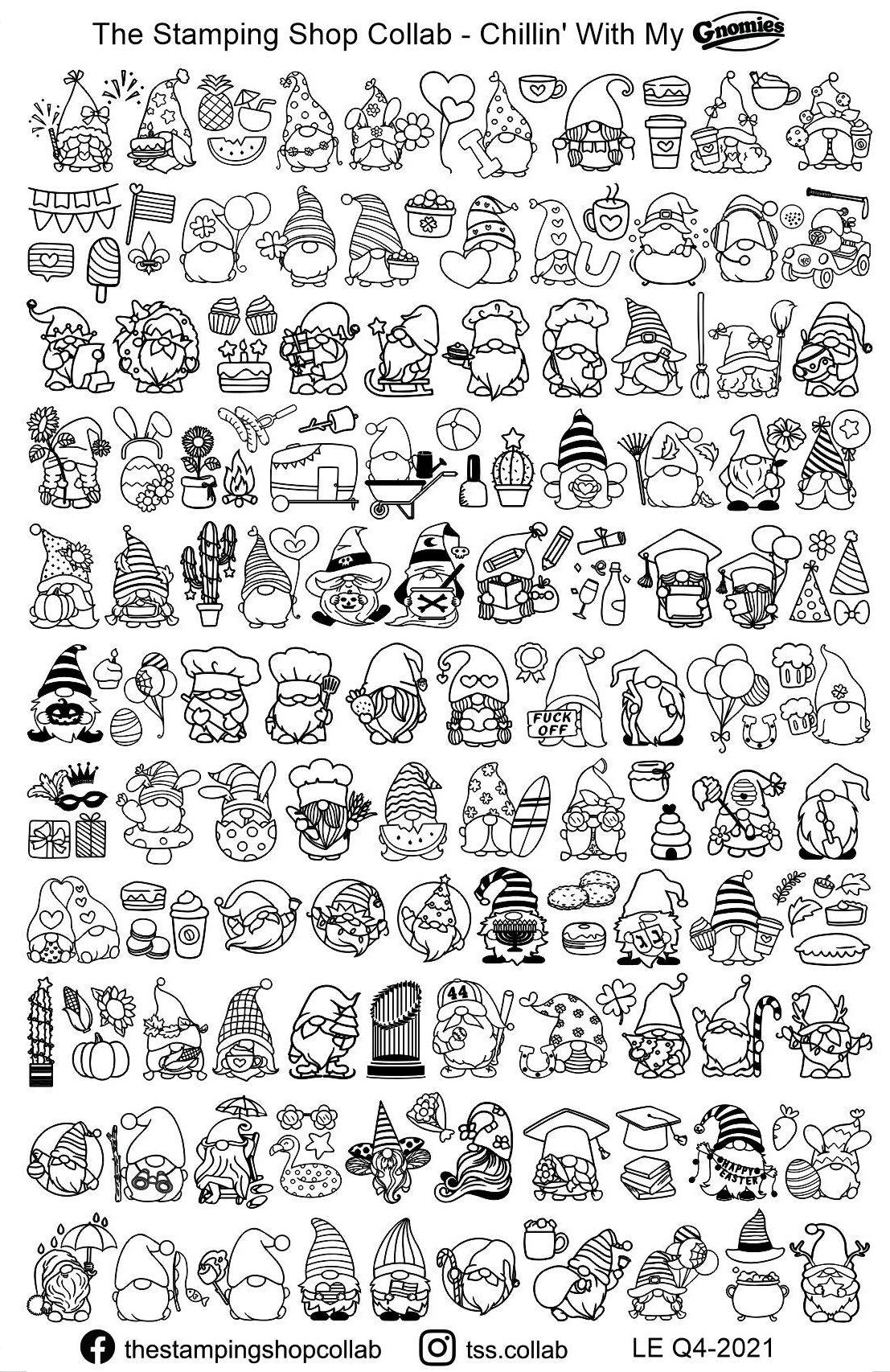 Join the enchanting world of gnomes with the "Chillin' with My Gnomies" nail art stamping plate. It's more than a plate; it's an opportunity to wear the whimsy and charm of gnomes on your nails and to immerse yourself in their delightful company.