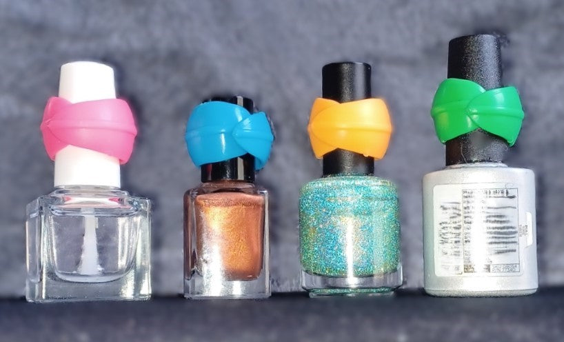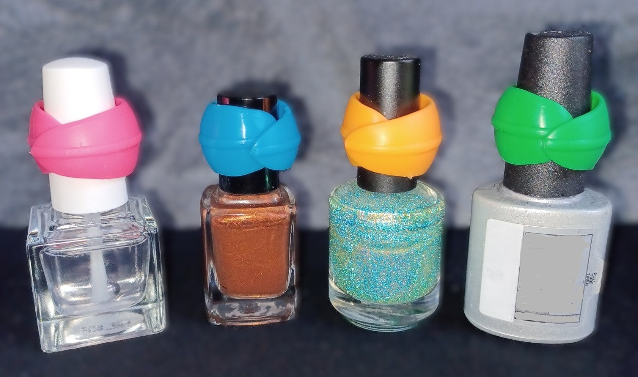 The curled shape allows these to fit onto a variety of sizes of polish caps. The silicone material helps to increase the grip force to encourage stubborn bottles to open more easily.