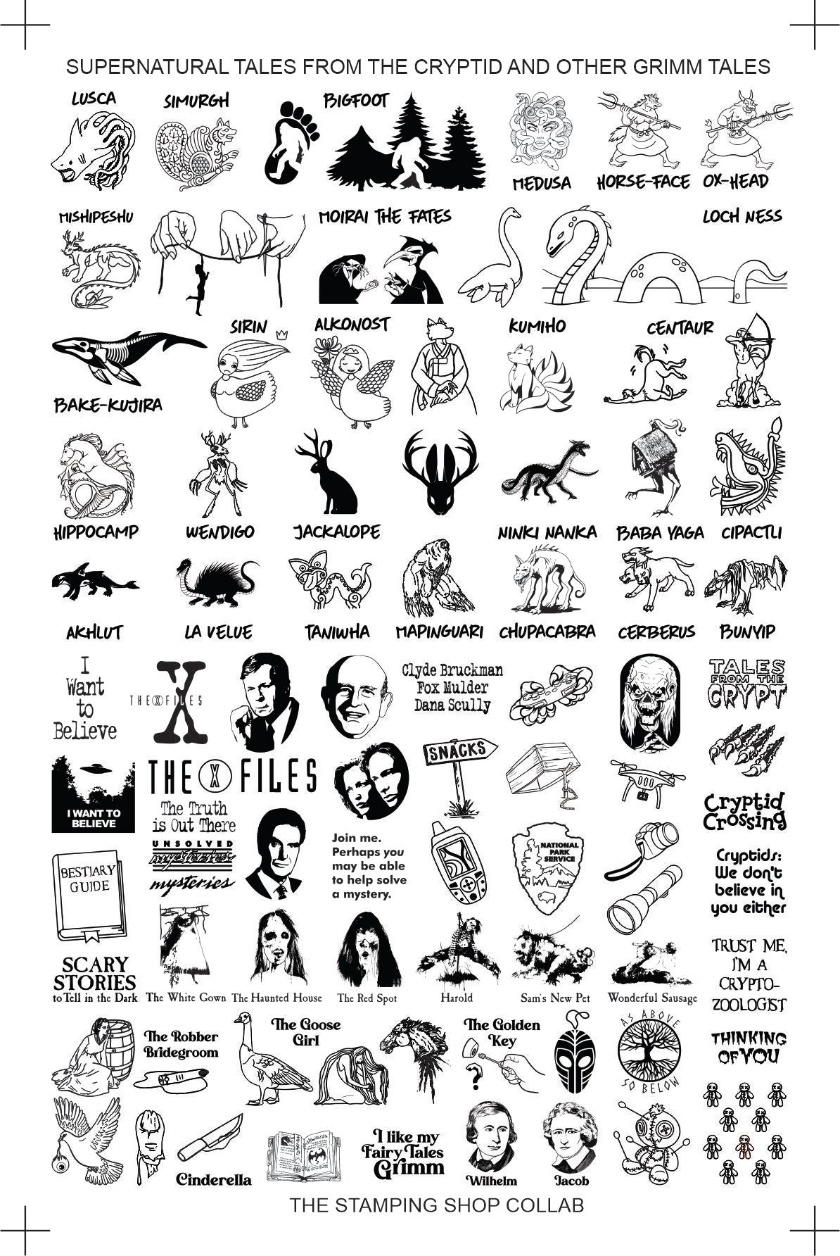 Dive into the mystical world of legends and lore with our "Supernatural Tales from the Cryptid and Other Grimm Tales" nail art stamping plate. It's not just nail art; it's an enchanting journey through the realms of supernatural beings and timeless stories.